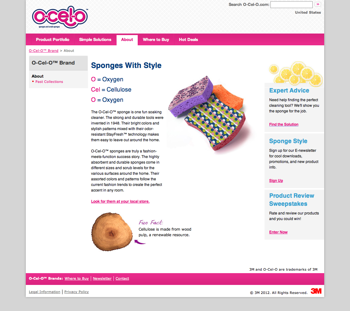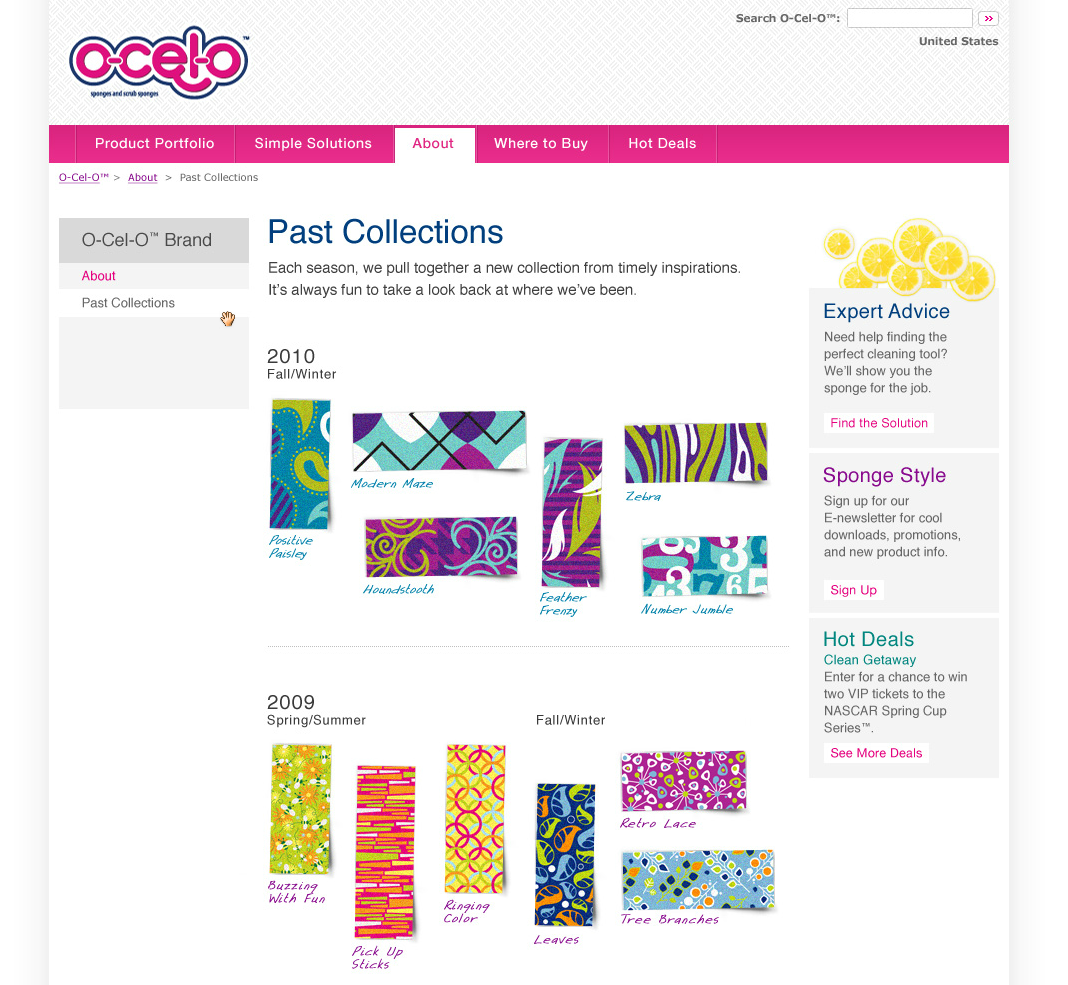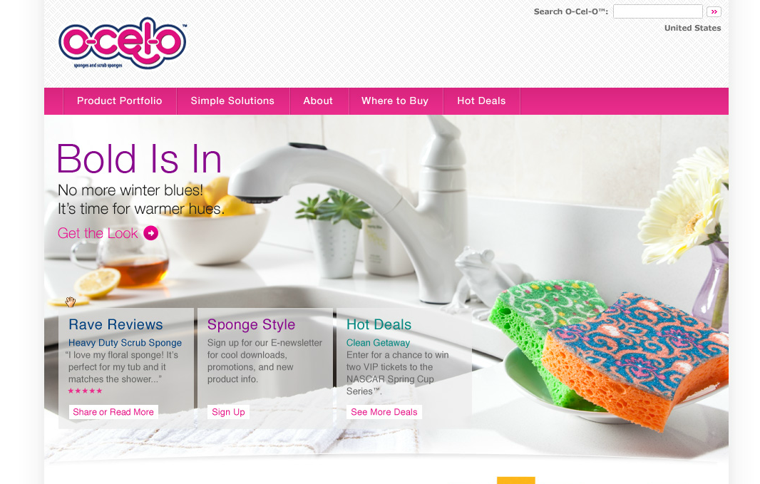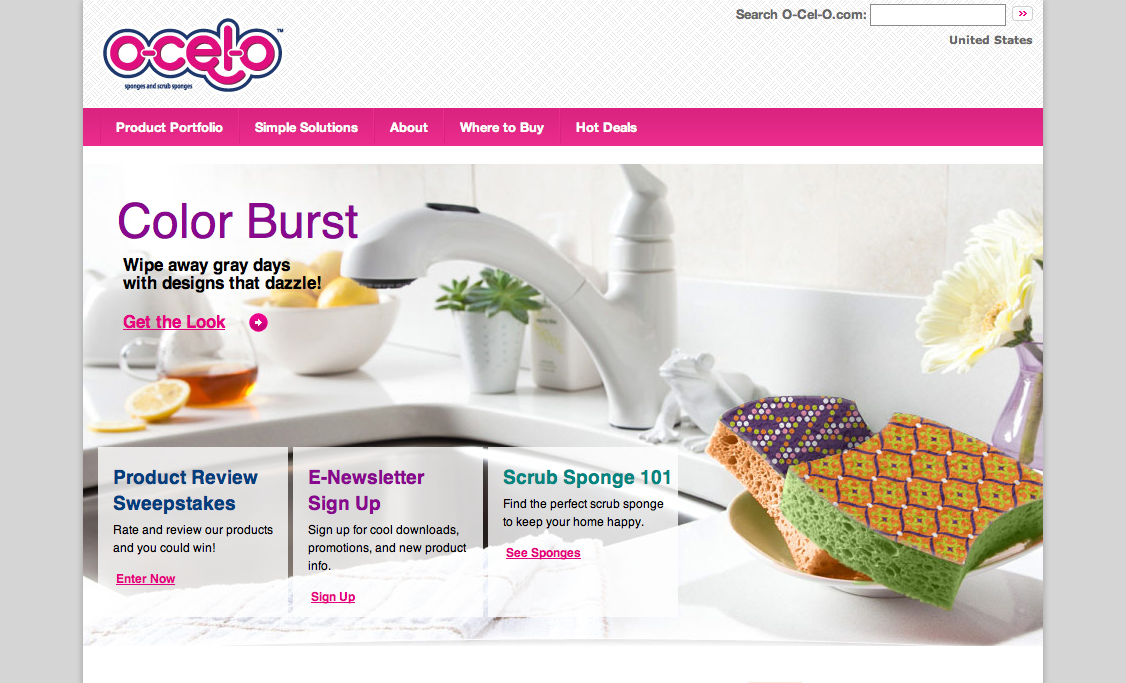 A website for flashy sponges that matches the outgoing personality of stylish moms.